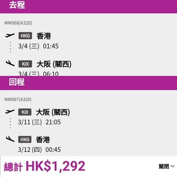 結論:三千五左右就包行李直航返香港,航班時間都幾唔錯,唔使多講都知勁抵啦!平飛只限下年3月來回,想返香港探下親友可以諗諗佢!