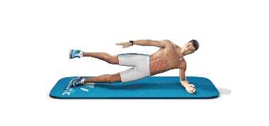 ▼側臥,上背部和腿部同時抬起。