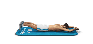 ▼俯臥,上背部和腿部同時抬起。