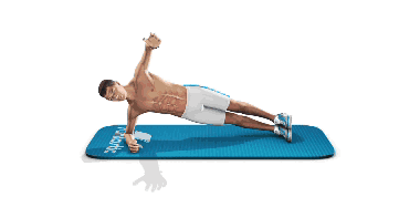▼側臥平板支撐,同時手部向上抬起。