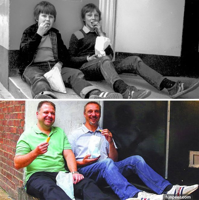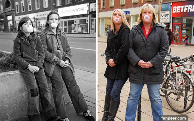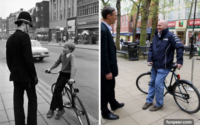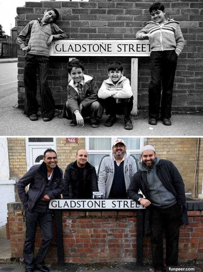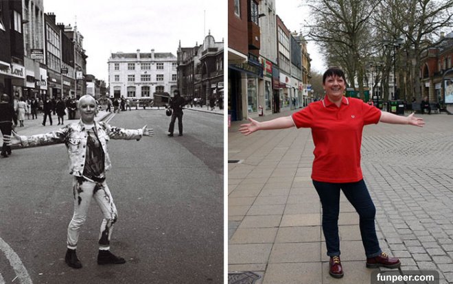 下面這些照片都是攝影師Chris Porsz耗費了相當長的時間在英國Peterborough街道上,用相機來捕捉相當具有特色及紀念價值的照片,相隔三十年過後,攝影師再度找到這些原班人馬,透過同樣的動作及照片來完成這些多年後的照片來對比!