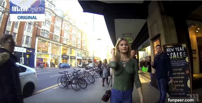 Kelly Klein說,「街上很冷,起初會覺得自己很暴露,但不久就習慣了。但隨著路人不斷投以異樣的眼光,又會想起自己其實沒穿衣服。」