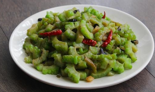 食材:苦瓜、豆豉、蒜、乾紅辣椒、鹽、白砂糖、雞精、生抽