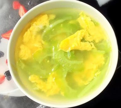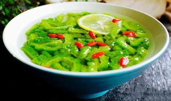 3、鍋里重新加入適量清水,燒開後加入苦瓜,把雞蛋打散,再次燒開後加入雞蛋液,待蛋花成型後關火,加入適量鹽和香油調味即可!