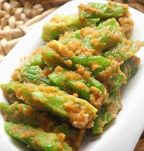 食材:雞蛋、苦瓜、胡蘿蔔、鹽、生粉
