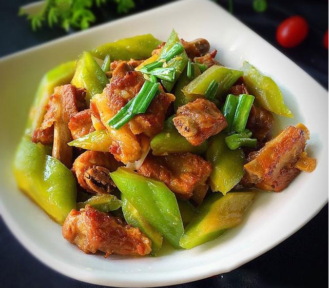 6、排骨燜的基本差不多了,下入苦瓜一起小火燜煮3至5分鐘左右,根據自己口味適當的添加鹽或者雞精