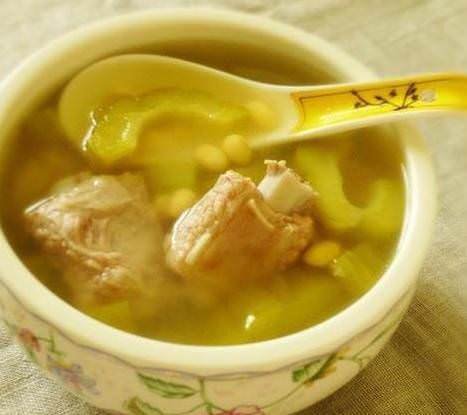 食材:排骨一條、苦瓜一根、黃豆、薑一塊、鹽