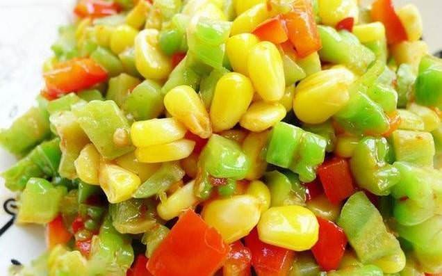 食材:苦瓜、彩椒、玉米、甜辣醬 、油 、鹽 、薑末