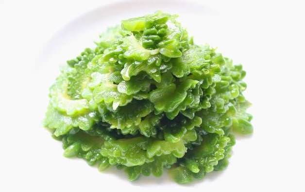 4、將泡好的苦瓜取出,瀝乾水分,下入到燒開的沸水中,焯1分鐘,撈出,瀝乾水分,也可去除苦味