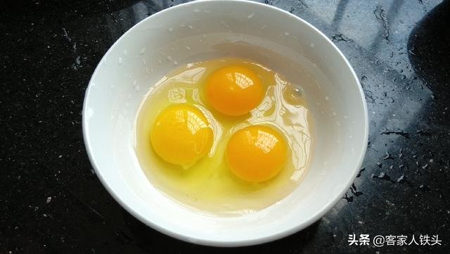 第四步:準備三個雞蛋,把它打成液,充分打散哦。