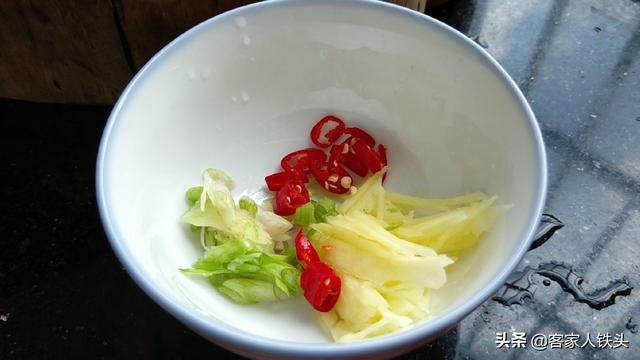 第一步:首先準備一點薑蔥,把薑切成薑絲,把蔥切成薄片,再切一點辣椒圈,吃辣的朋友可以多放點。