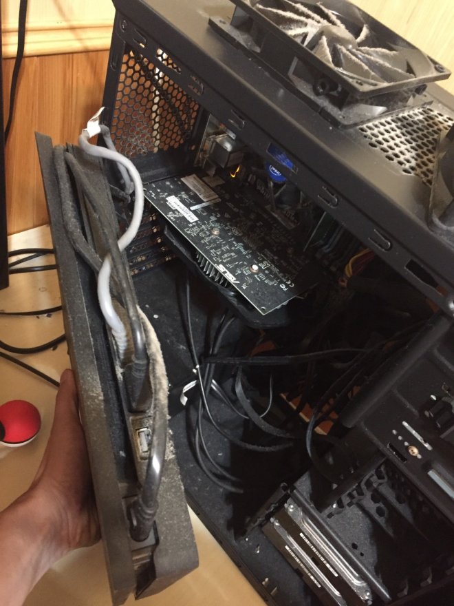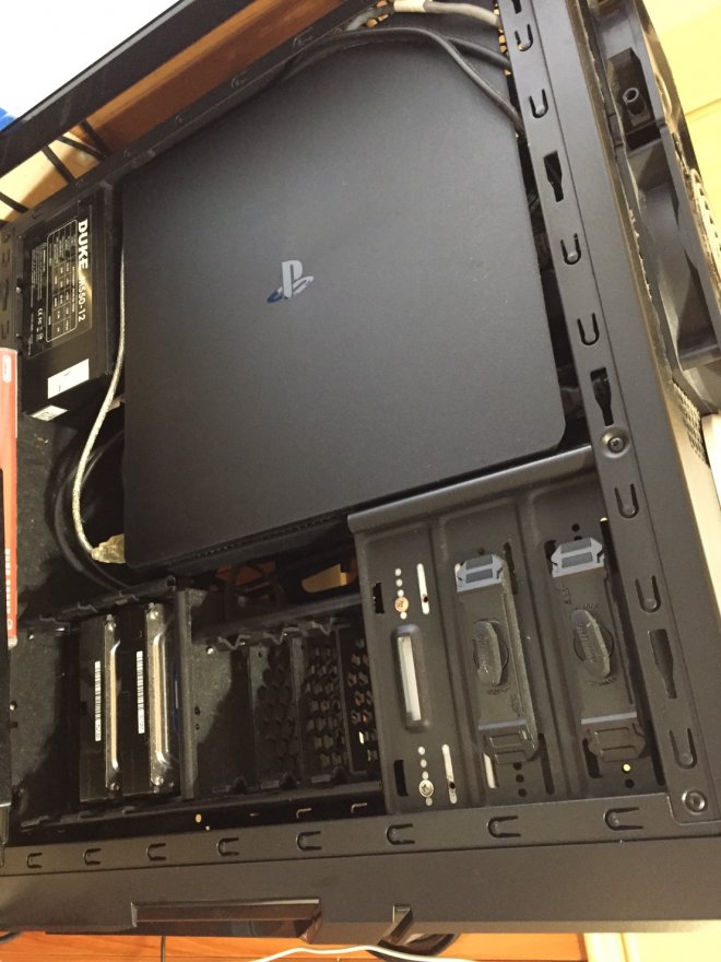 最後他竟然硬生生地把PS4塞到電腦主機裡啦XD其他人看到照片後紛紛心酸表示「我懂」,為了玩個遊戲真的太辛苦了啊~