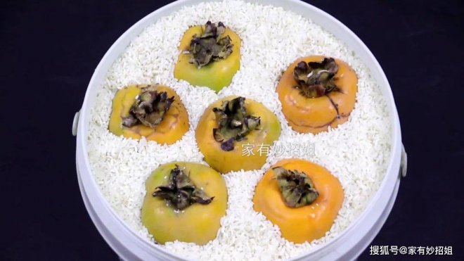 家裡的大米也是可以用來催熟柿子的,方法很簡單,我們先將柿子表面的一些灰塵雜質之類的擦拭乾凈,然後直接把柿子埋進大米中就可以了。由於大米透氣保暖,同時裡面又含有一種乙烯氣體,這種乙烯氣體可以幫助催熟柿子。並且大米非常乾燥,柿子表面有多餘的水分,也可以被大米吸收掉,這樣就可以防止柿子腐壞變質。大概放置上三天左右,柿子的澀味就被去除了,變得香甜軟糯的。