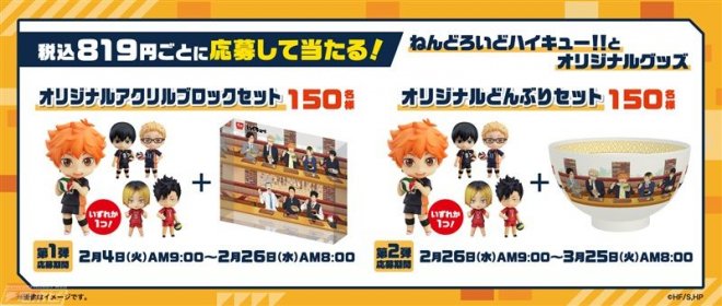 每消費滿819日圓,即可參加一次抽獎,最大獎是 「黏土人《排球少年!!》角色公仔」!