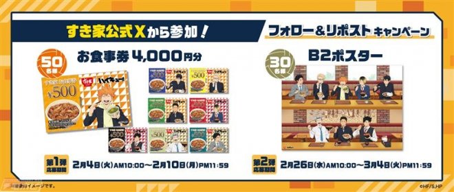 日本知名牛丼連鎖店 すき家(SUKIYA) 宣布,從 2025年2月4日(週二)9:00起,將推出與《排球少年!!》的 聯名限定活動,不僅能獲得 超限量收藏品,還有機會抽中 「黏土人」公仔!