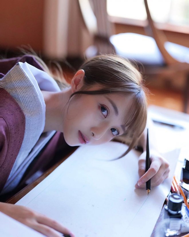 但她真正厲害的地方不只在照片裡,而是她那完全不像寫真女星的背景與腦袋。