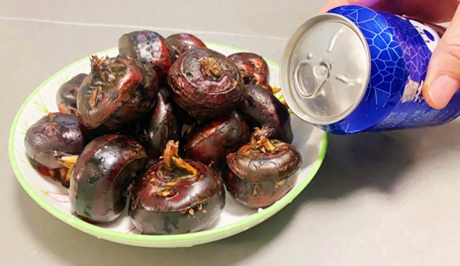 平時我們給馬蹄剝皮都是直接用刀削,這樣比較難操作,一不小心就會傷到手,這是非常不好的,而且削出來的馬蹄肉不完整,有點浪費可惜了,而經過以上的操作,馬蹄已經很好剝皮了,哪怕你直接用手剝都十分的容易,但是這樣還是不夠快,所以我們需要用上一個易拉罐環。