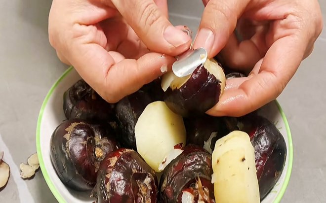 經過刷洗的馬蹄,表面上已經比較乾淨了,但可能還會有一些我們看不到的蟲卵,所以我們煮一遍用可以將細菌蟲卵殺死,更重要的是煮過一遍之後,馬蹄會更好的剝皮。