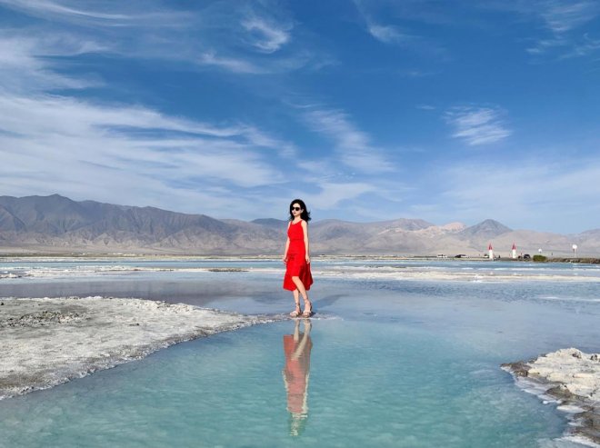 中年女士拍旅行照,可以讓挑選漂亮的景色,拍大大的景物和小小的自己,這樣自己就成為景物中最漂亮的存在啦,怎麼拍怎麼美。