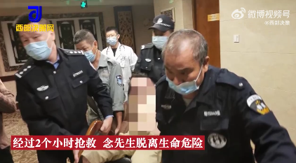 警察趕到現場後,仍舊沒有得到回應,連忙帶著工具到隔壁房間,由外破壞窗戶外的鐵柵欄,闖入房間後才發現念姓男子幾近昏迷,臉色蒼白且意識模糊,病況相當緊急,連忙送往醫院急救。