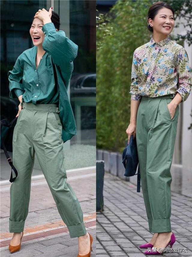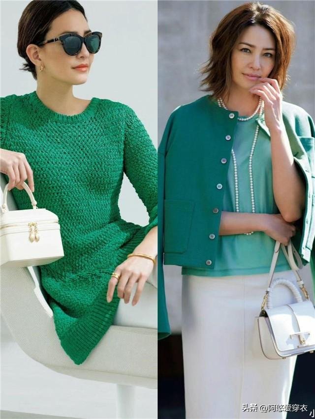 不過如果到了中年階段的女性要選擇綠色服飾的話,盡量選這種亮度沒那麼高的綠色,搭配在身上會更偏成熟穩重的感覺,如果亮度高,而且飽和度也高,穿在身上有可能就會顯得過於熒光,從而也可能會顯黑,顯得沒有氣質。