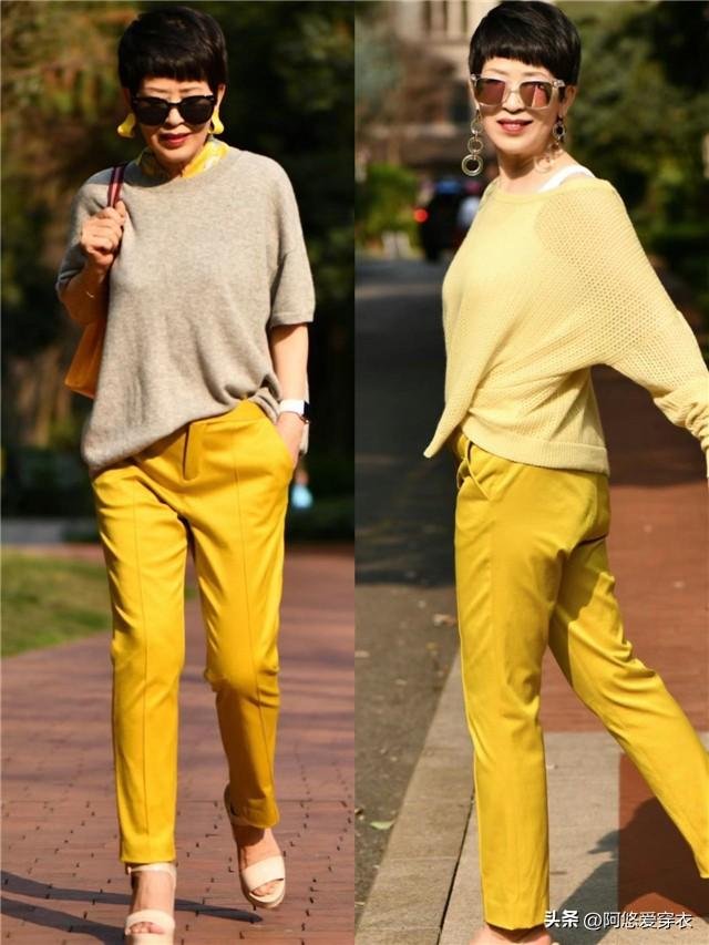 膚色暗沉的女性想要選擇時尚的色彩修飾皮膚,可以嘗試這種時髦的鵝黃色,黃色屬於暖色調,但只要你選擇這種飽和度不是特別高的鵝黃色或者是薑黃色,那麼穿在身上還是很顯白的,不用擔心個人的皮膚問題,而且這種黃色充滿著活力感,由於屬於暖色調,所以穿在身上總會顯得特別溫柔,上了年紀的女人穿非常地合適哦。