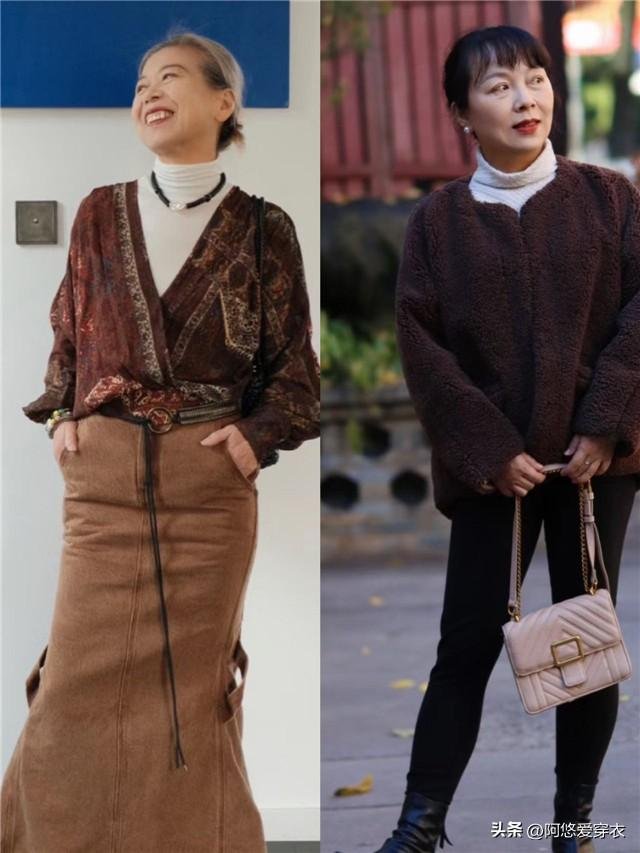 上了年紀的女人盡量少去穿這種暗沉的大地色系,尤其是深色大地色非常容易顯老,比如深棕色,還有深咖色,看似低調優雅,但實際對於膚色暗沉,膚色偏黃女性而言是非常容易顯俗氣的。
