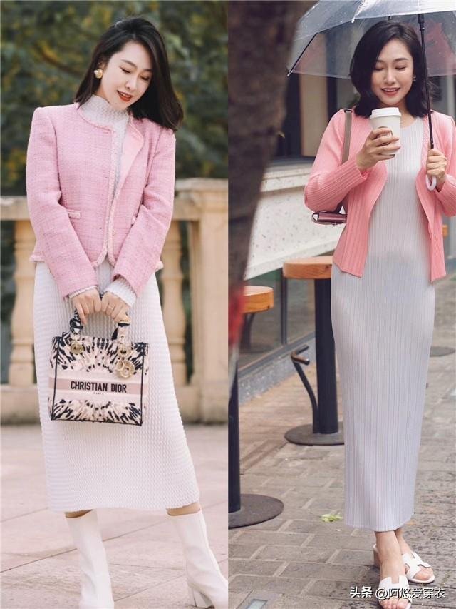 成熟女性如果要選擇粉色系的單品,可以去選這種偏暖色調的粉色,這種色彩給人的感覺更溫柔,知性成熟,穿在身上特別容易修飾皮膚。
