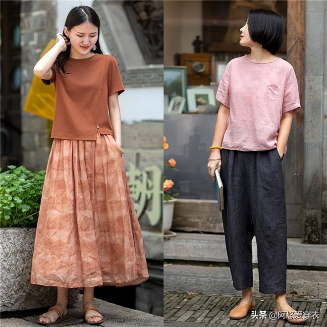根據下面這張圖的對比也能發現,右邊這種深棕色的衣服穿在身上就自帶一種老氣感和沉悶感,很難穿出亮點,而左邊這種稍微有一些亮點的珊瑚橘更容易幫我們去提亮膚色,中年女性穿也不會覺得用力過猛,只要飽和度不是特別高,穿在身上都是很有氣質的。