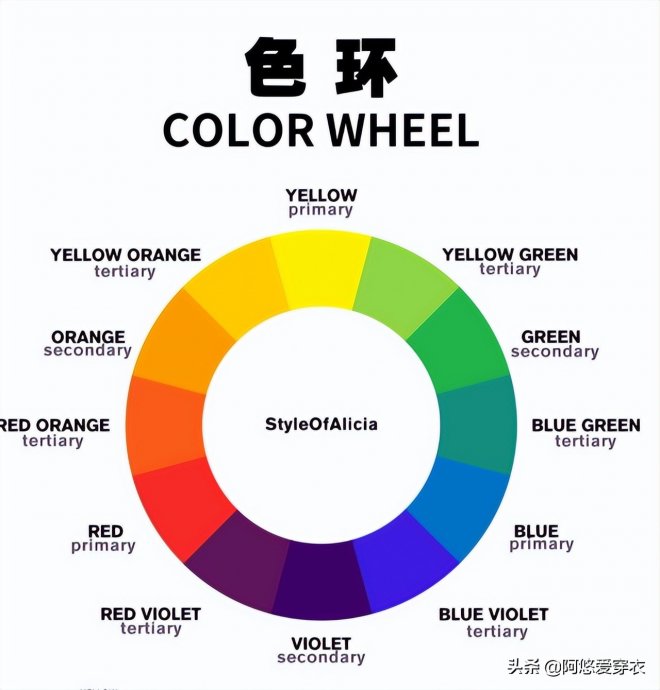 搭配色彩的前提是我們需要了解一下什麼色彩才是適合自己的,在這張色相環中,你可以明確地感受到冷色調和暖色調,它們兩種色彩的對比度是很明顯的,冷色調的衣服穿在身上自帶清冷感,而暖色調的服裝往往更具有活力,給人的感覺也更年輕靚麗。