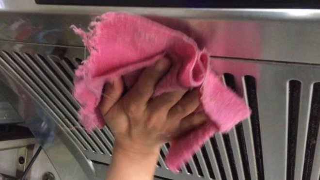 擦拭一下,噴過清潔水的油污,並不需要很大力氣,抹布擦過立即擦拭掉了。