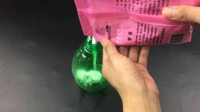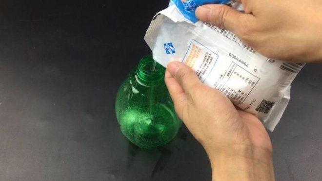 十分簡單的製作,首先倒一點食用鹽在噴壺裡。
