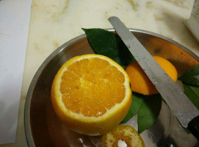 2、把切開的那片橙子重新蓋好,放進碗里。碗里不用加水,直接放進蒸鍋,蒸至水沸後再蒸15分鐘,就做好了。蒸好的橙子,皮有一定的收縮,碗底還會有汁水流出。 吃法:去橙皮吃果肉,碗底的汁水一起喝掉。