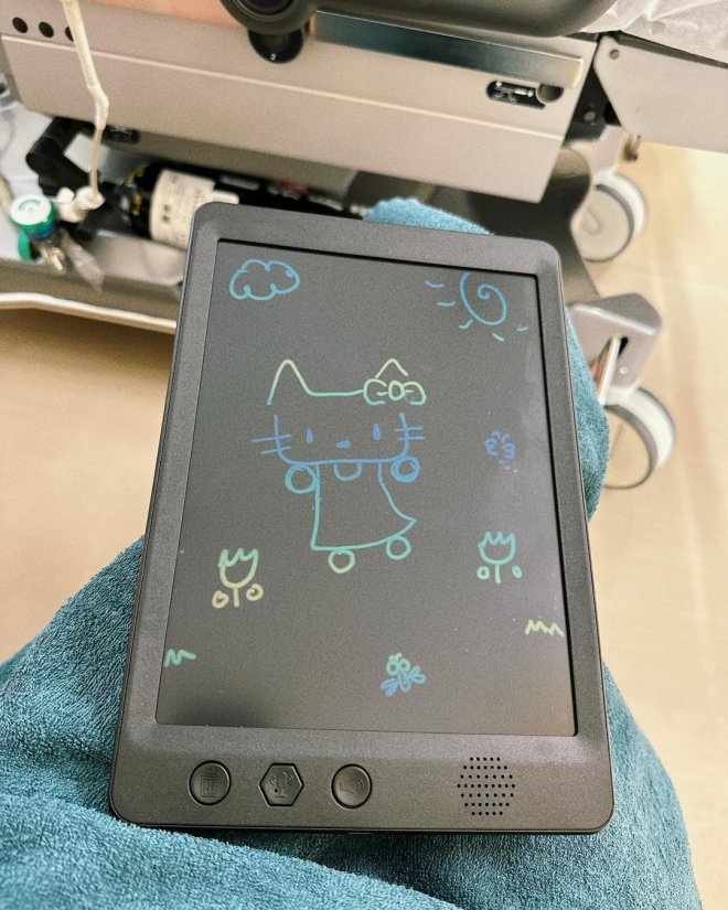 只見她戴上手術用的帽子,手上吊著點滴,眼睛還帶著血絲,看起來相當疲憊不堪,目前處於康復過程中,她也用寫字版畫圖跟大家報平安,正能量喊話:「對不起,讓你們擔心了,再過一段時間我就能開口說話了,再稍等一下,非常感謝大家一直以來的支持。」現在的她不知道未來聲音會變得怎樣,但希望會是更清澈的聲音!