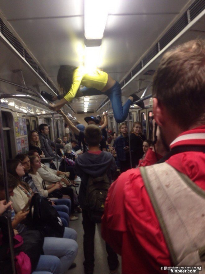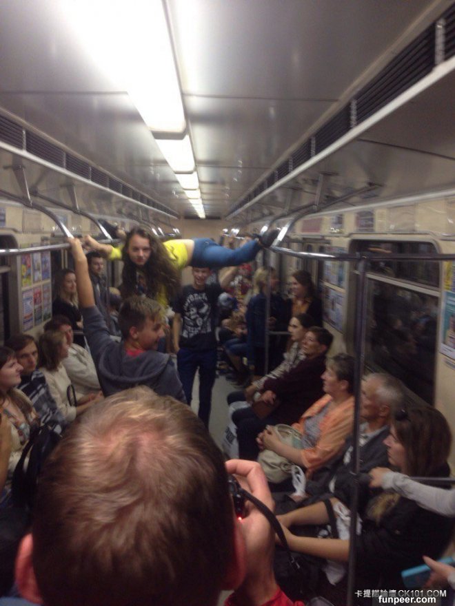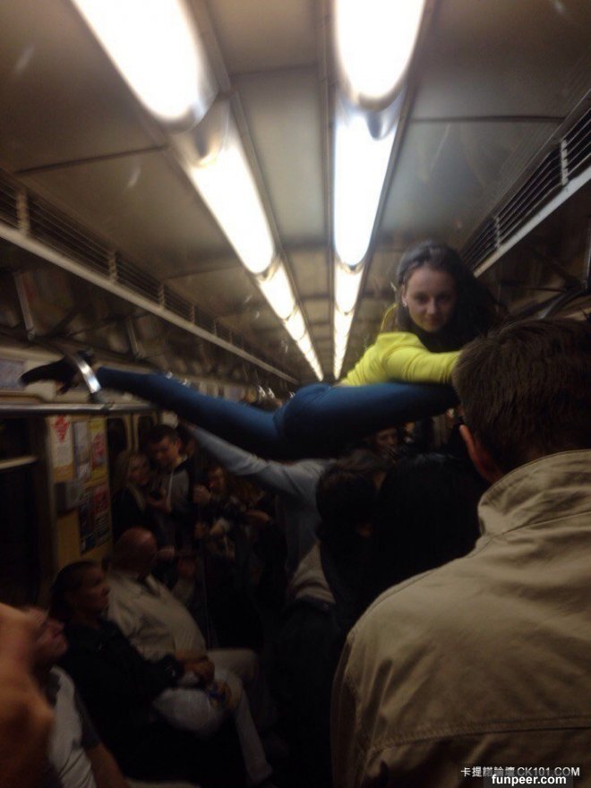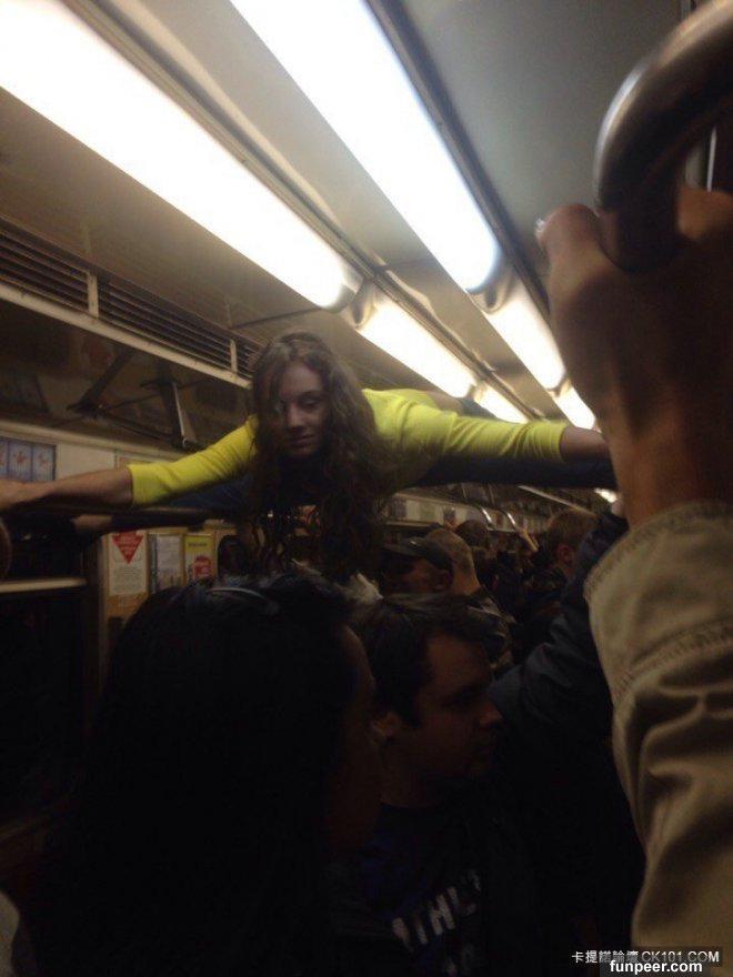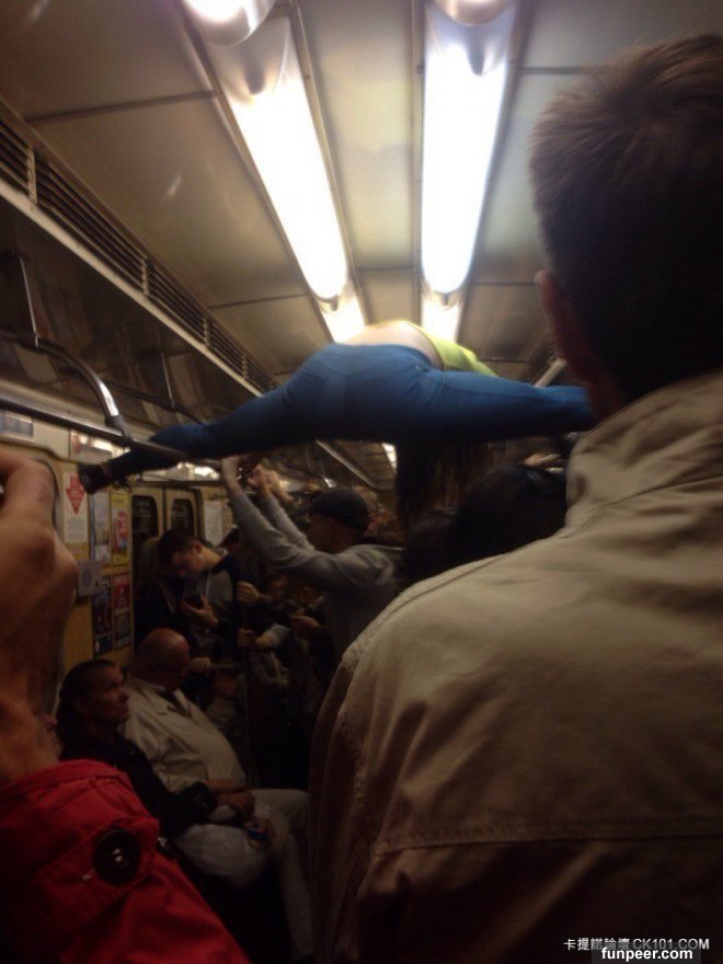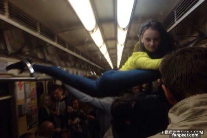 地鐵擠到沒位置站! 軟Q翹臀妹雙腿猛力張開....「懸空一字馬」讓男乘客爽翻