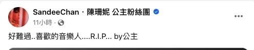 近期不少演藝圈的明星離世,讓很多人都相當惋惜,近日又傳出,曾拿下金馬獎,多次入圍金曲獎、金音獎的大咖驚傳過世的消息,讓不少好友都震驚不已,知名音樂人陳珊妮,也難過地在臉書寫下哀悼文,令人看了鼻酸。