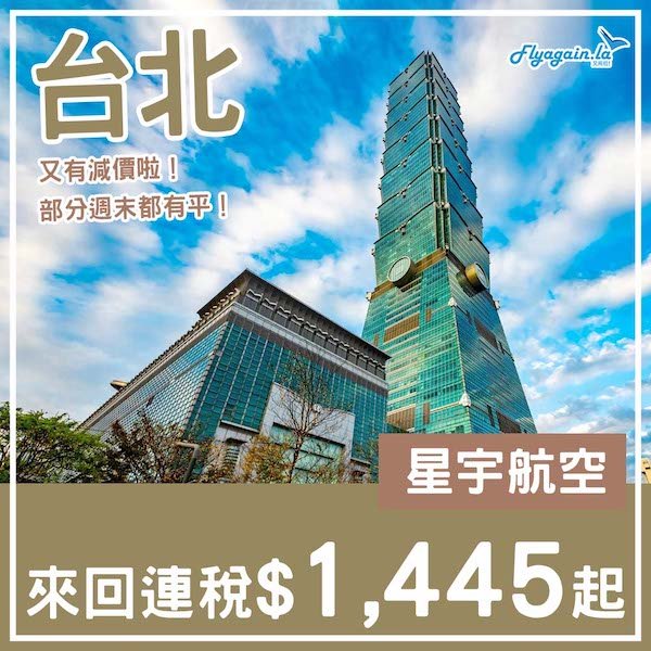 【台北】係星宇呀!部分週末都有平!星宇航空來回台北連稅$1,445起!5月30日或之前出發