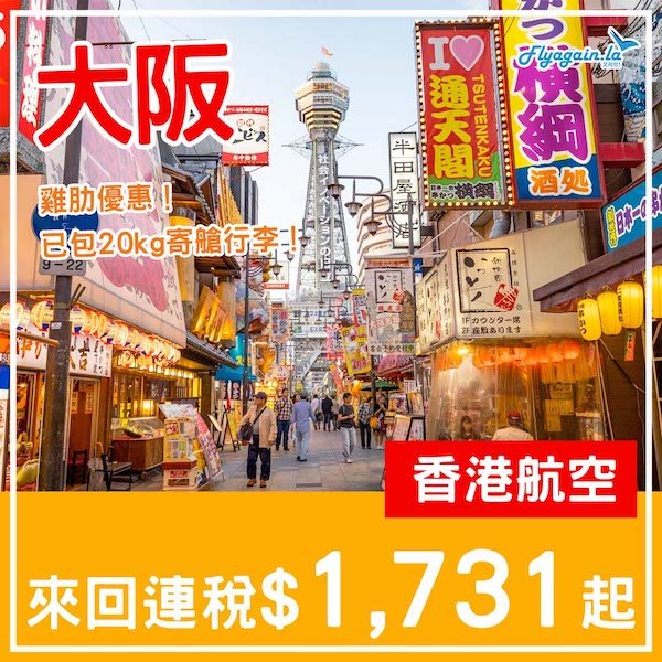 【大阪】雞肋優惠!香港航空來回大阪連稅$1,731起,包20kg寄艙行李!5月29日或之前出發