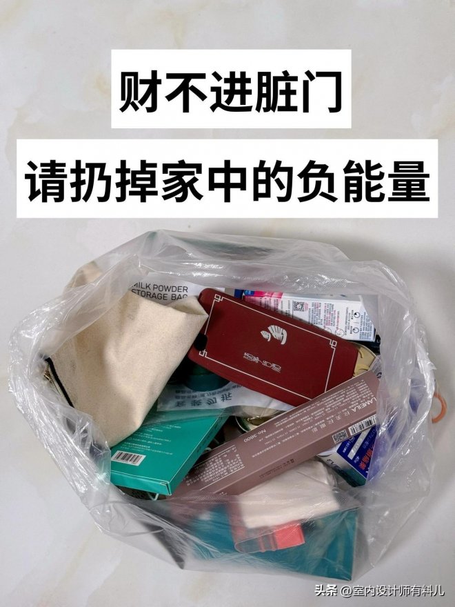 建議:有用的標識整理出來裝東西,空的瓶瓶罐罐全部扔掉,不要猶豫,該舍就舍。