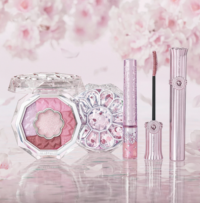 2024櫻花美妝-Jill Stuart Beauty 春季彩妝「櫻花花束」系列以優雅華麗的八重櫻為形象主軸,揉合柑橘和青蘋果的清新果香,推出眼影盤、眼彩、睫毛膏、腮紅和唇蜜等多款商品。
