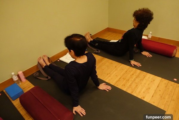 課堂上也有搭配一些輔具,來減緩一些瑜珈體位法上面的強度,也能藉由瑜珈磚的支撐能舒適的盤腿坐,讓膝蓋自然的放到地上,心情和呼吸都很容易變沉靜。