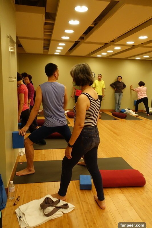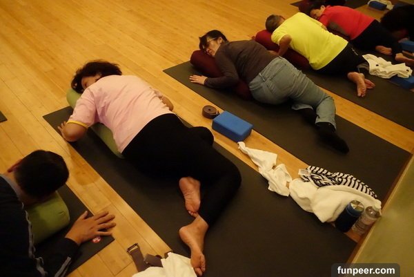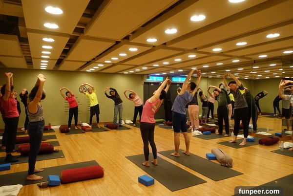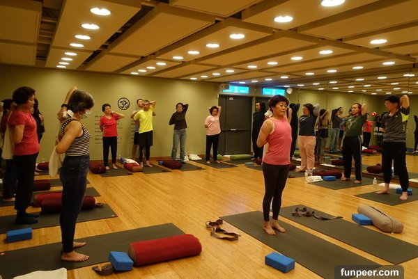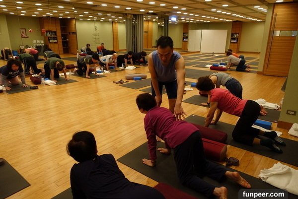 老師會一直提醒呼吸的節奏要搭配肢體的伸展,感覺參加的朋友們都做得很認真耶!