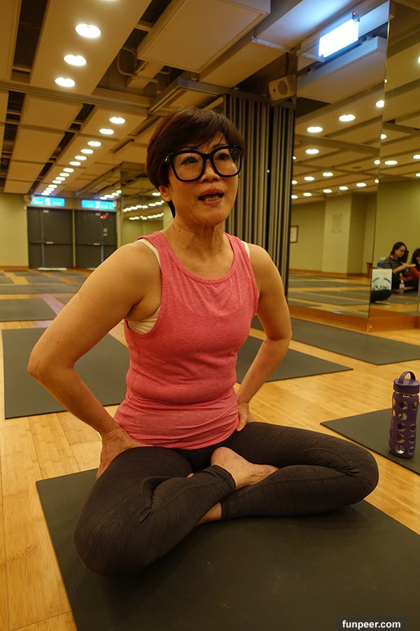 這位是PURE YOGA資深會員- 65歲的「時尚阿嬤」陳冬蓮,看起來根本不像65歲,她從58歲才開始練瑜珈,七年前開始練瑜珈的時候身體很僵硬,手碰不到膝蓋,背很厚無法走路很挺,後來經過不斷的努力且上了PURE YOGA十堂的一對一的私人教練課程後,對自己的身體更珈了解,也更知道如何針對不同的肌肉來用對力氣,所以日後在大眾瑜珈課程內上課也更加的自在和如魚得水。七年來除了出國之外天天來報到,除了讓柔軟度變好之外,也讓瑜珈變成生活中的一部分,七年未蓋過健保卡,也拿到了三張瑜珈的師資證照。