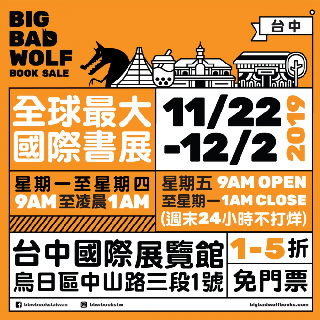 【大野狼國際書展】在11/22-12/2總共十一天的時間在臺中國際展覽館登場啦~